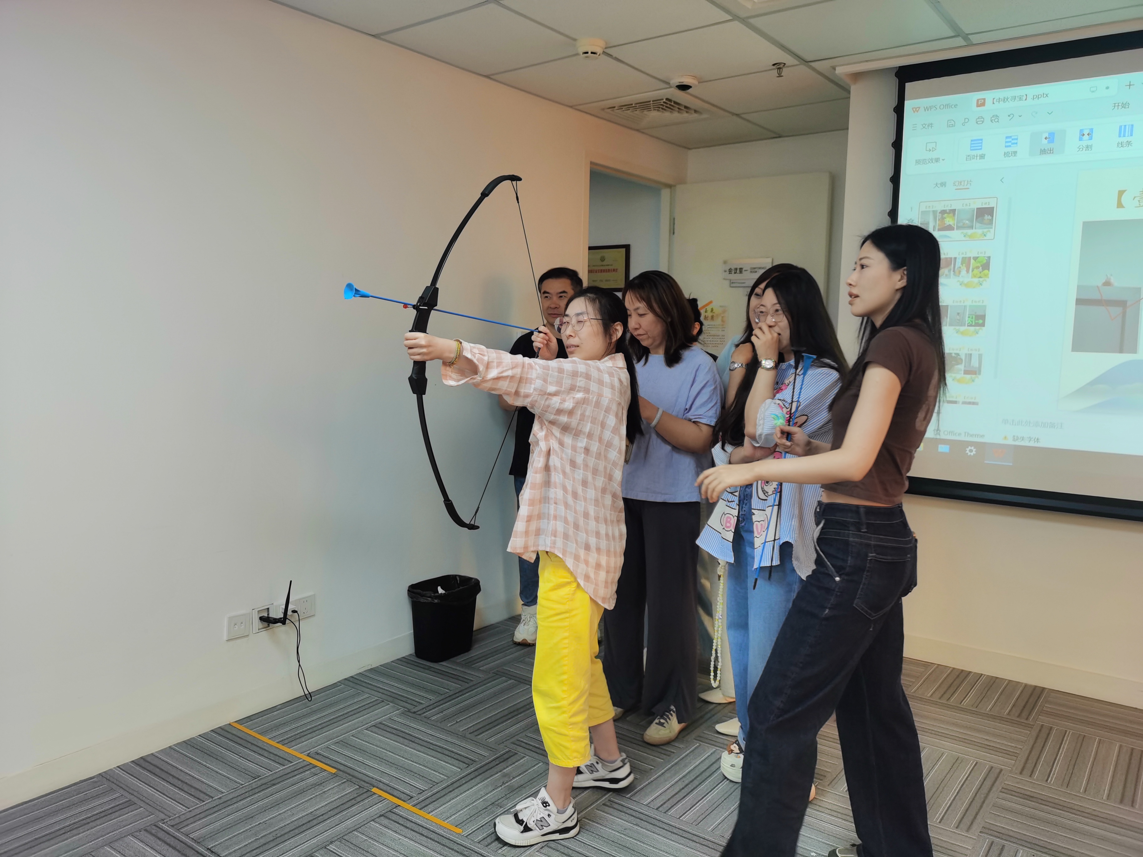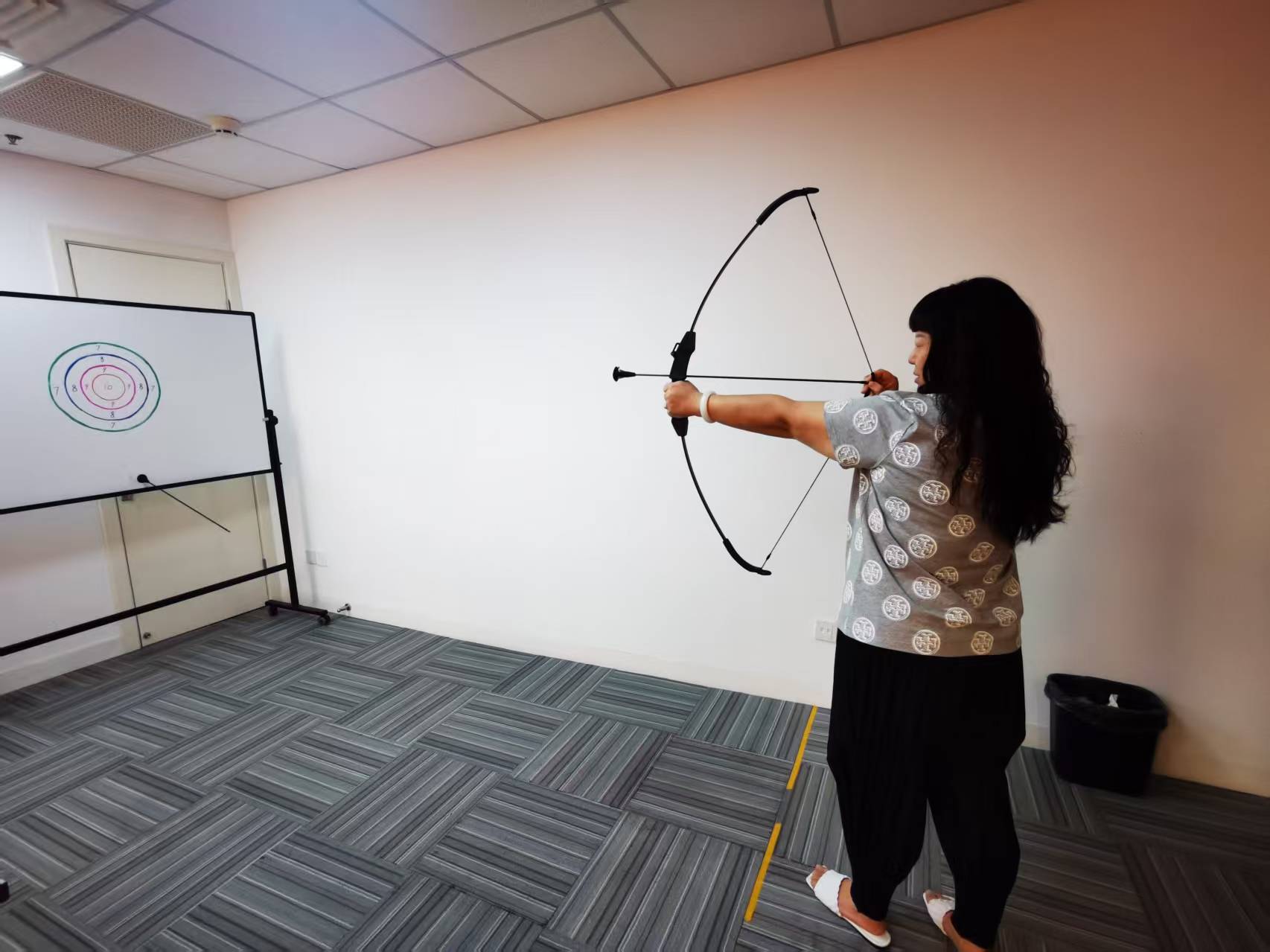 大会议室内,“玉兔射月”射箭游戏区则传来阵阵喝彩,选手们屏息凝神,瞄准“月亮”靶心,弓弦轻响间尽显飒爽英姿。