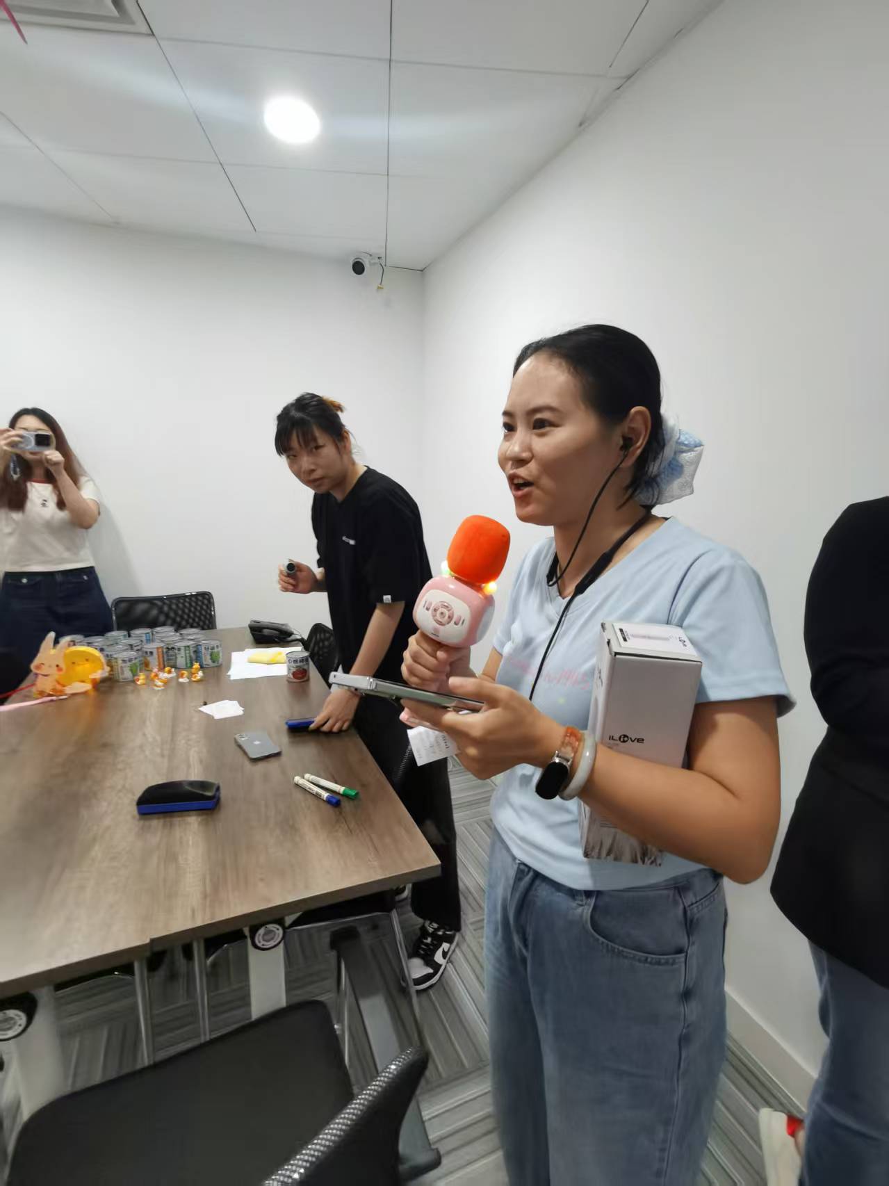 为增强活动趣味性,本次活动特别设置“集章通关”机制:完成大会议室及会议室二两项活动即可集齐两枚印章,集满三枚者(含DIY区参与章)可参与盲盒抽奖。抽奖环节将现场气氛推向高潮,员工们手持集章卡排队抽取惊喜,拆开盲盒时的欢呼声此起彼伏。