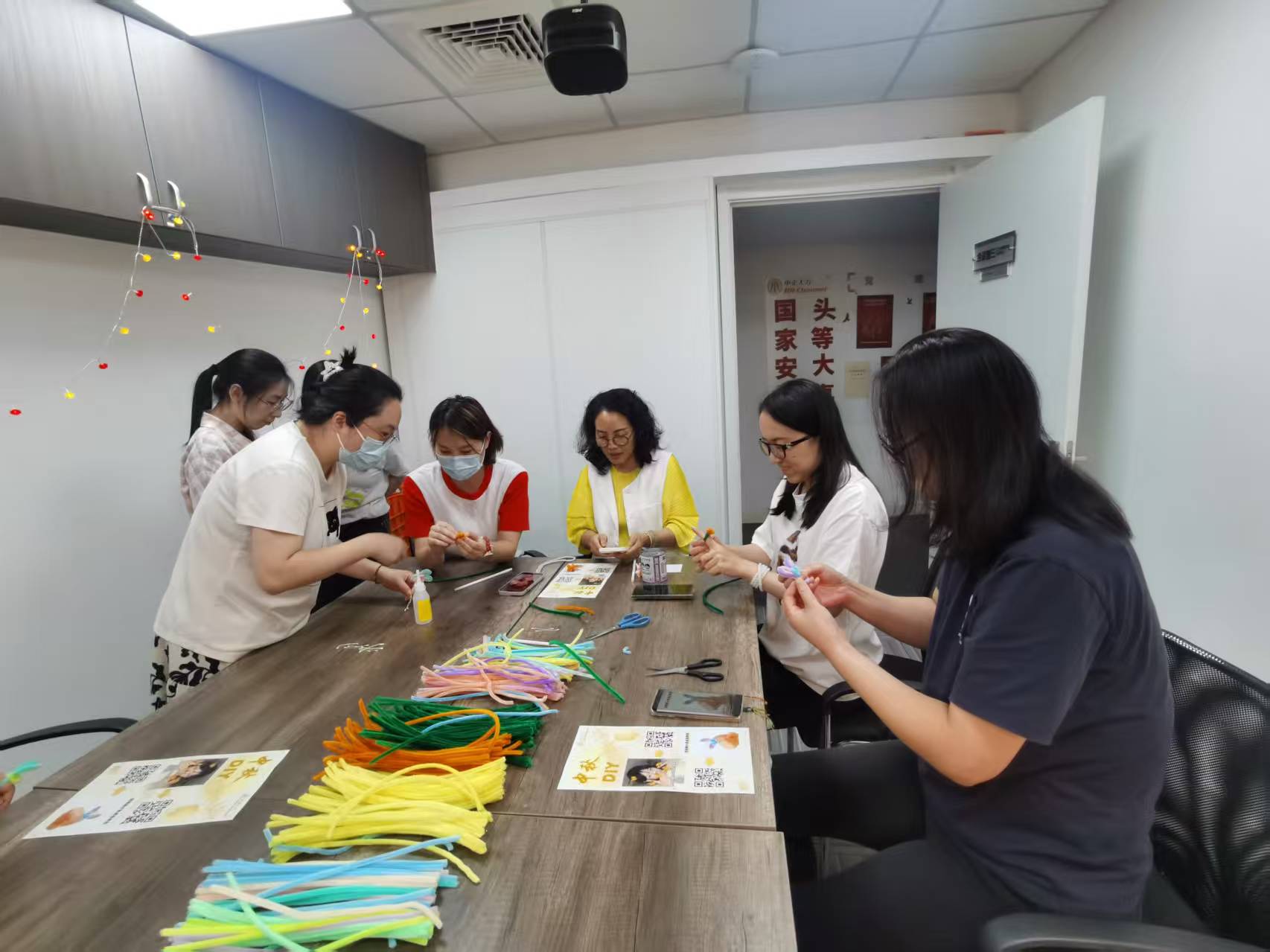 而会议室三的“中秋金桂DIY”区则弥漫着温馨气息,员工们用彩色扭扭棒精心编织金桂戒指,一枚枚独一无二的手作饰品在指尖诞生,成为传递节日祝福的独特载体。