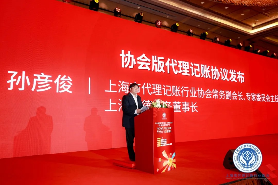 大会期间,《2025版代理记账协议》正式发布。发布环节,上海市代理记账行业协会常务副会长、专家委员会主任,上海星德财务董事长孙彦俊详细解读协议修订背景与核心亮点,介绍该协议在广泛吸纳行业多家机构建议的基础上,进一步明晰代账服务双方的权利与责任边界,尤其在规范服务流程、规避合作风险等方面作出更细致约定,为行业标准化服务提供重要指引,助力推动代账行业服务质量整体提升。